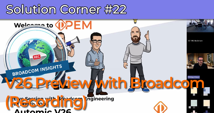 Automic Automation V26 is just around the corner! In our recent live session, we had the exclusive opportunity to take a detailed look at the upcoming major release together with the Broadcom Engineering Team (Matthias, Martin, and Andreas).